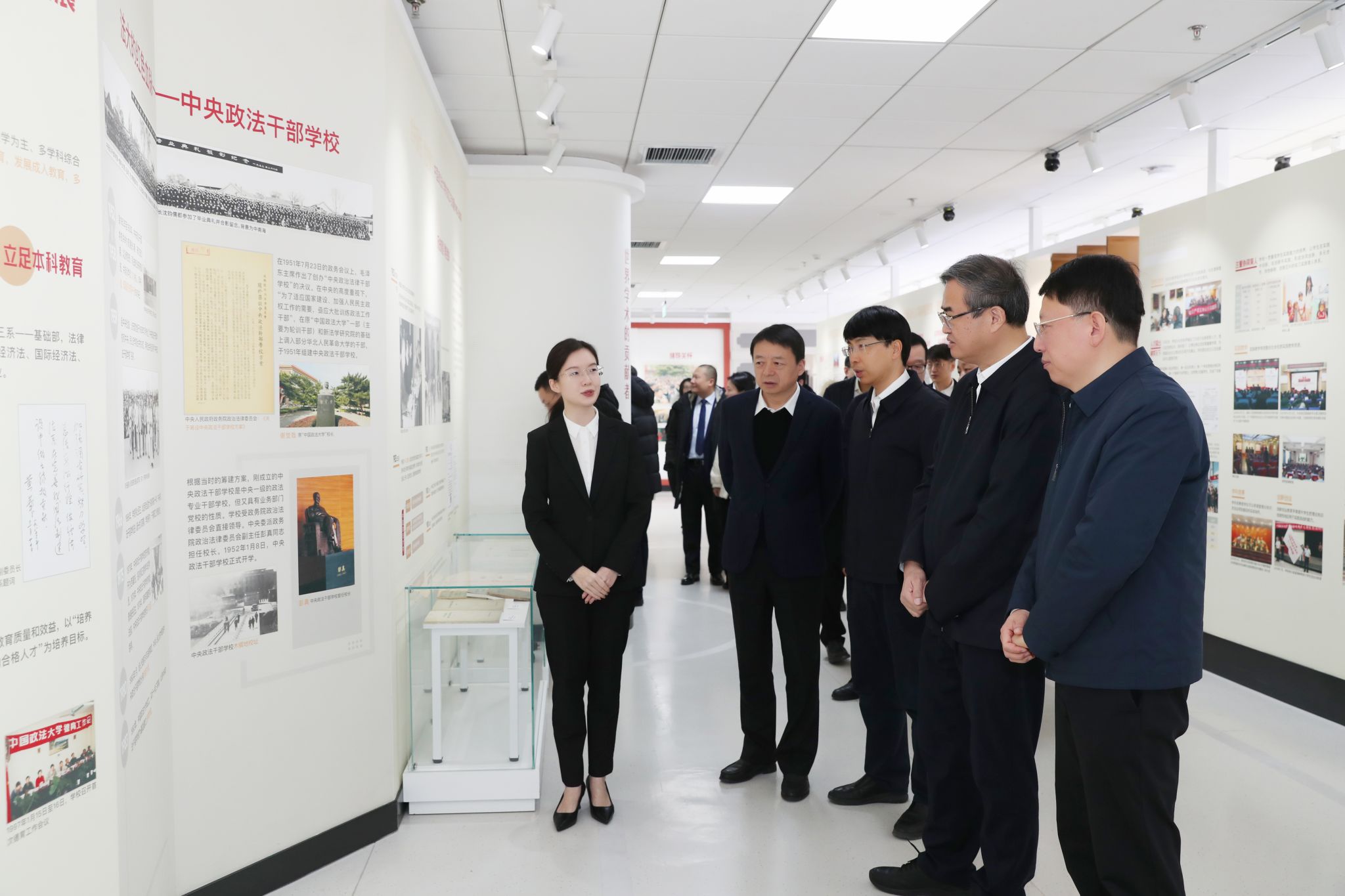 会前,北京理工大学一行在姜泽廷、马怀德等领导的陪同下一同参观了我校校史展和“致敬人民教育家张晋藩”主题展览。